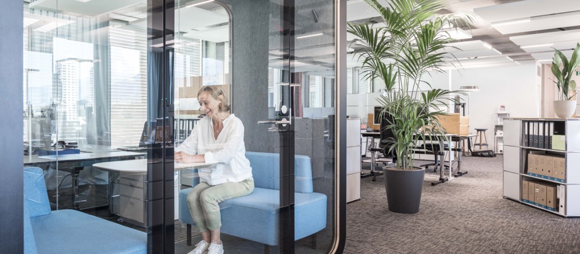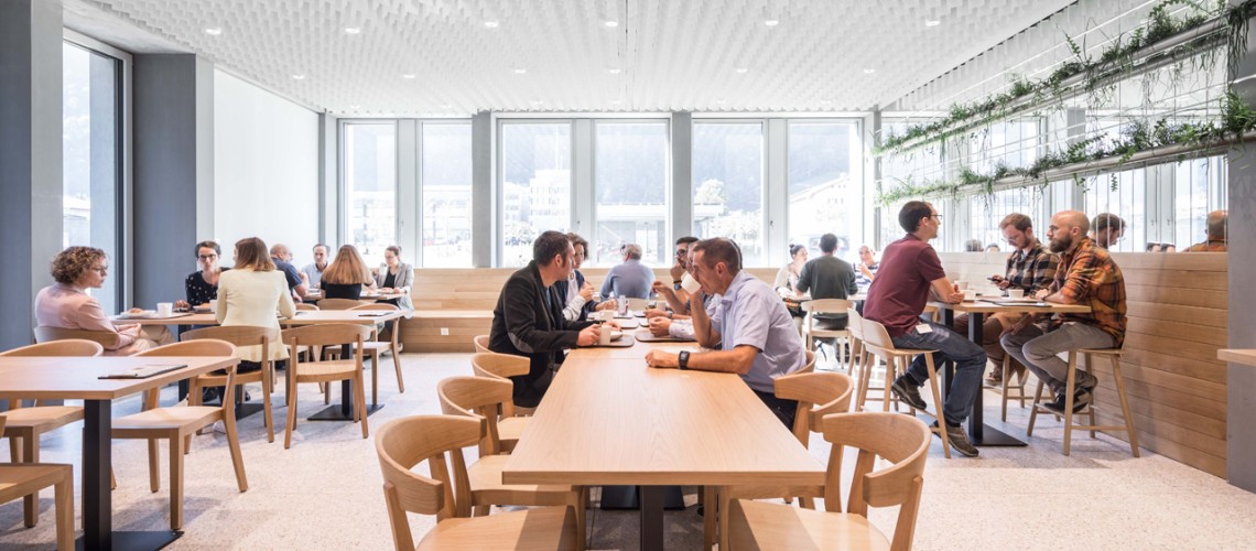 Depuis l’été 2020, le nouveau bâtiment administratif « sinergia » situé à l’ouest de Coire, le chef-lieu des Grisons, offre quelque 440 postes de travail à des collaborateurs du canton. En concentrant en un seul lieu divers secteurs administratifs, cet édifice économise des coûts, il exploite des synergies et il optimise les processus. Les nouvelles places de travail sont attractives également pour les collaborateurs : au lieu de disposer d’un bureau à une ou deux places, ils travaillent désormais dans un espace collectif ouvert, le « poste de travail 4.0 ». Les utilisateurs peuvent choisir leur place de travail de manière flexible en fonction de leurs besoins actuels. Le canton entend parvenir ainsi à une déhiérarchisation et à un climat novateur.