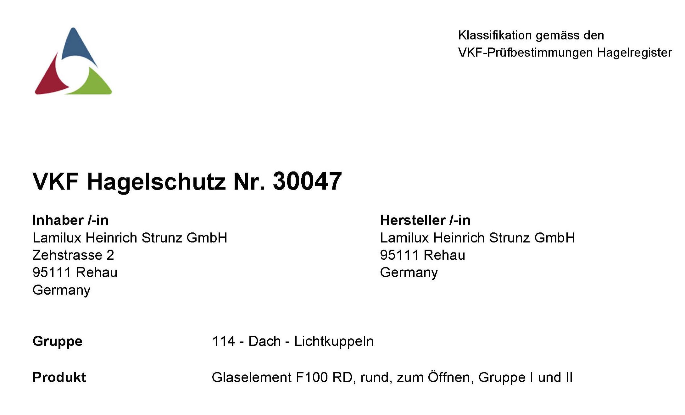Illustration 3 : Exemple de justificatif de protection contre la grêle pour un lanterneau