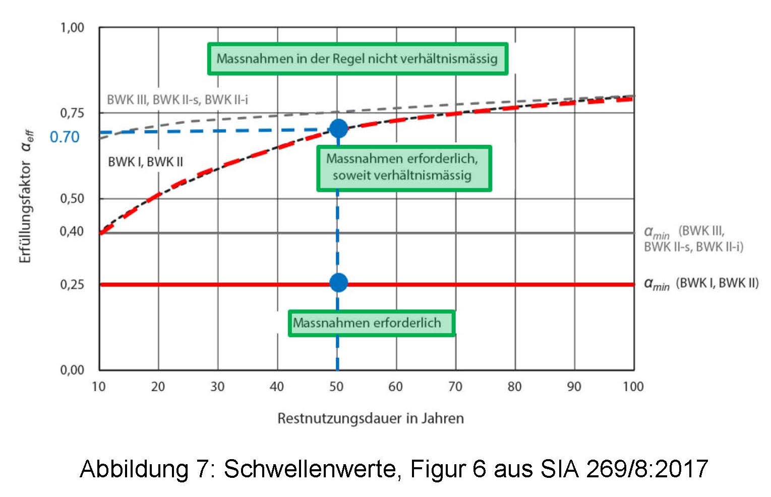 Abbildung 6: Beispiel für die Bestimmung des Erfüllungsfaktors nach SIA 269/8 für Erneuerungen.